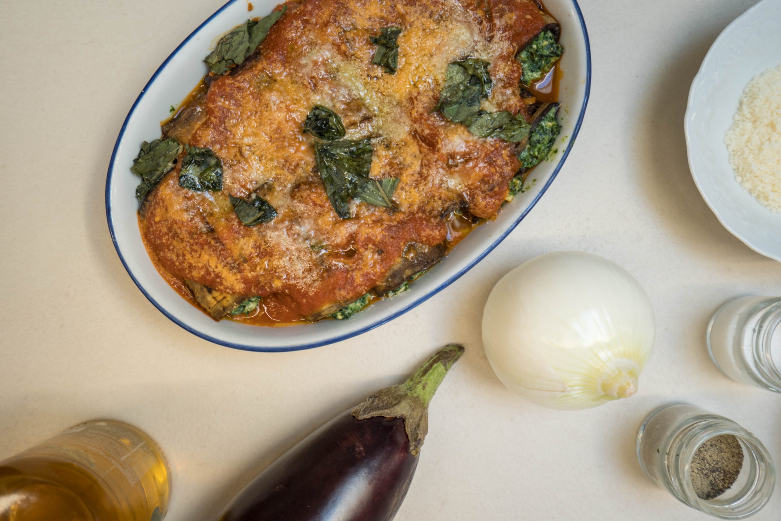 CANNELLONI DI MELANZANE RIPIENI DI POLLO, RICOTTA E SPINACI
